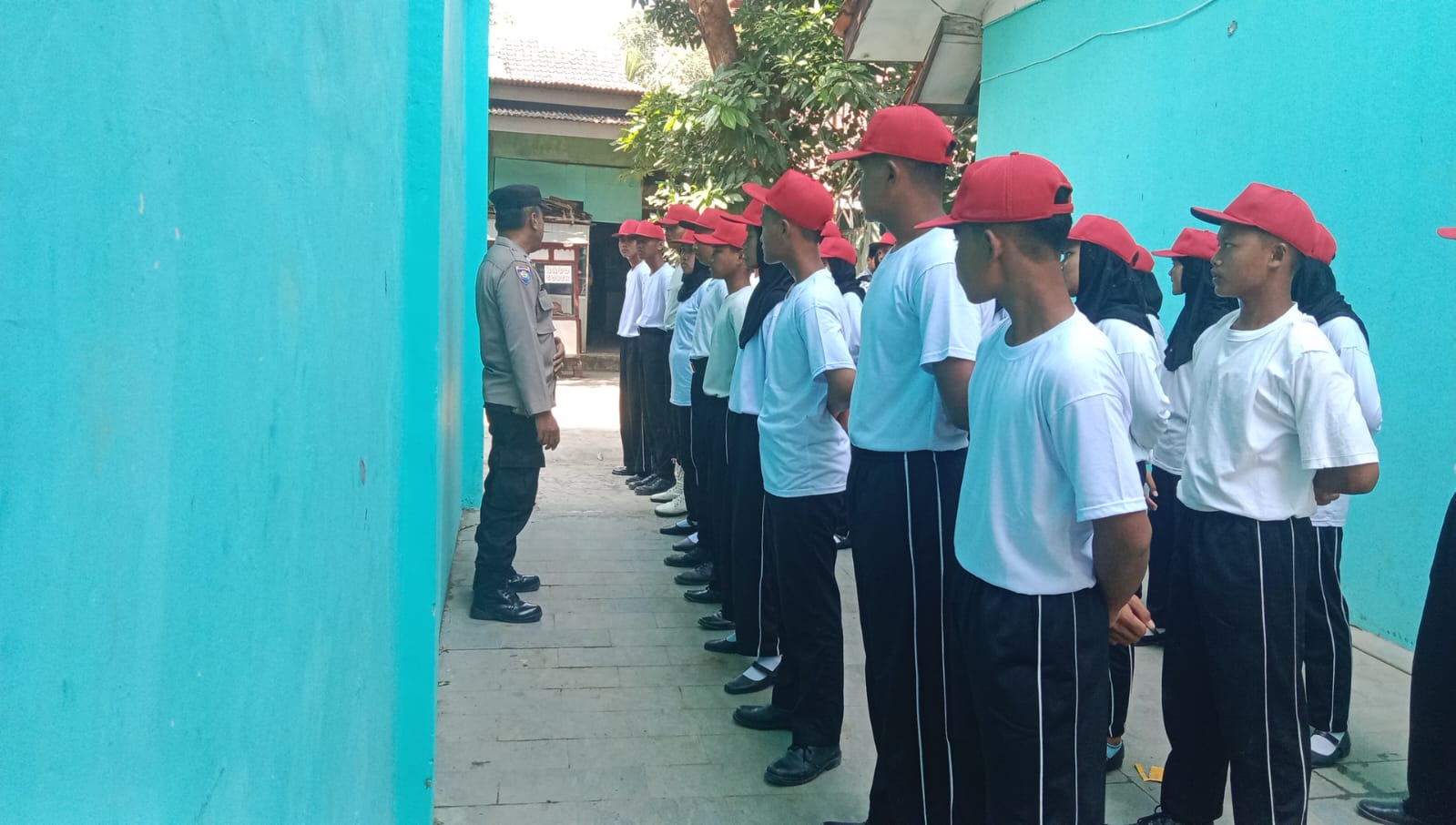 CIREBON – Sebagai bentuk kepedulian terhadap Anak Bangsa khususnya kepada Pelajar yang akan bertugas sebagai Pasukan Pengibar Bendera (Paskibra) Kecamatan Ciwaringin Kanit Binmas Polsek Ciwaringin Polresta Cirebon Aiptu Supartono bersama Kanit Samapta Aiptu Agus G, memberikan Pembekalan dan Pemantapan dalam latihan dan Persiapan Upacara Peringatan HUT Kemerdekaan Republik Indonesia yg Ke-78 tingkat Kecamatan Ciwaringin di Halaman sekolah MAN 2 Cirebon, Desa Babakan Kecamatan Ciwaringin Rabu ( 16/08/2023 )
