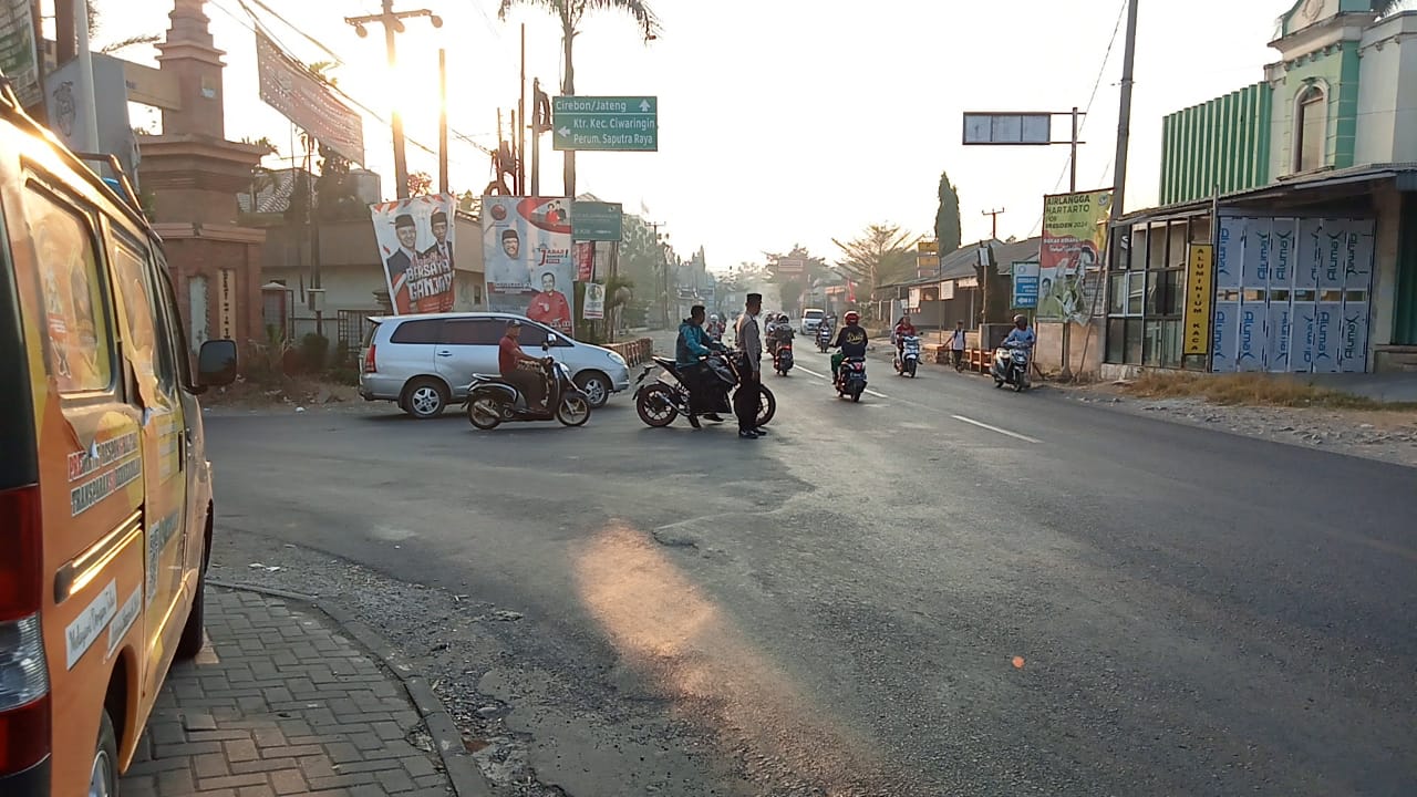 Personil Polsek Ciwaringin dalam melaksanakan Gatur Lalu lintas pagi di Jalan raya Cirebon – Bandung tepatnya di pertigaan RS,Sumber waras Desa Ciwaringin Kec. Ciwaringin, pengaturan dipagi hari dilakukan sebagai salah satu langkah guna meminimalisir pelanggaran lalu lintas di pagi hari dalam rangka melayani aktifitas masyarakat sehubungan dengan banyaknya kegiatan masyarakat terutama warga yang akan berangkat kerja dan anak-anak berangkat ke sekolah yang ada di wilayah Kecamatan Ciwaringin karena arus Lalu lintas cukup ramai sehingga perlu mendapat perhatian dari pihak Kepolisian Polsek Ciwaringin,