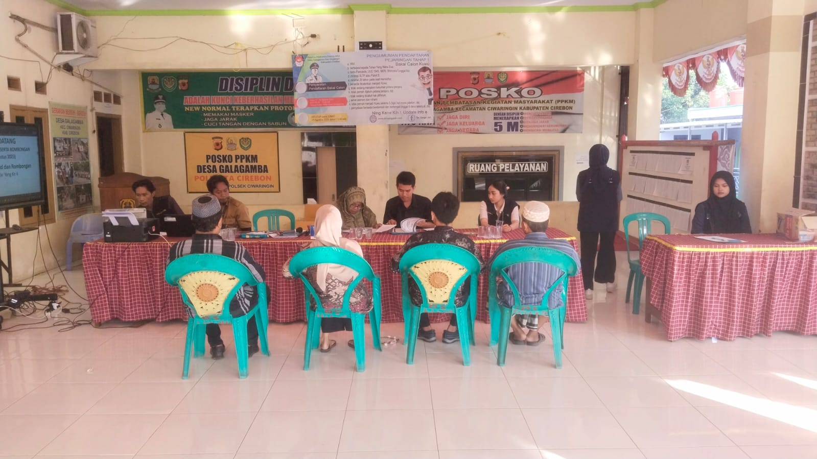 Ciwaringin – Kanit Intel Polsek Ciwaringin Polresta Cirebon Aiptu Siswanto beserta anggota monitoring giat pendaftaran balon kuwu ke kantor Sekertariat panitia Pilwu Desa Galagamba Kecamatan Ciwaringin, demi menjaga keamanan dan kondusifitas wilayah menjelang pemilihan Kuwu serentak tahun 2023, di Desa Galagamba Kecamatan Klangenan Kabupaten Cirebon. Senen ( 21/08/2023 ) jam 08.00wib,