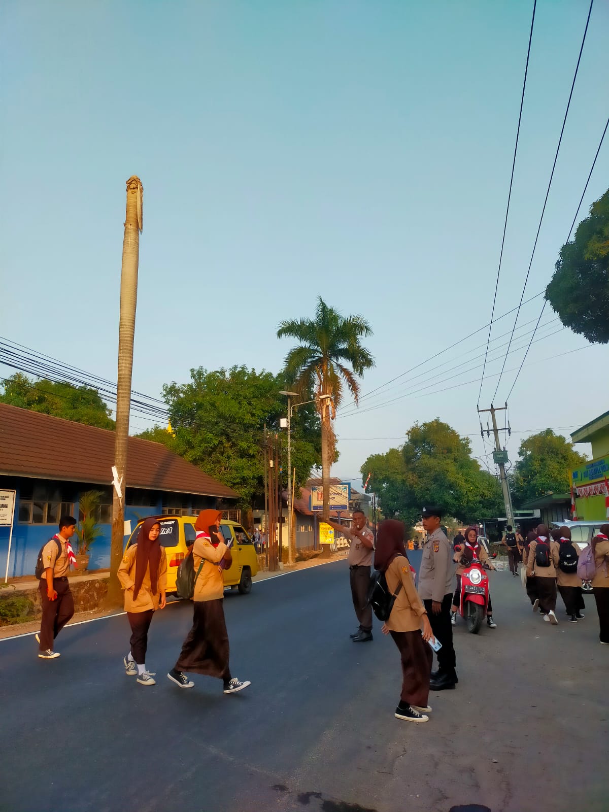 Giat pengaturan arus lalin tersebut dilaksanakan di Depan SMK Manba’ul ‘Ulum Sindangmekar Kecamatan Dukupuntang Kabupaten Cirebon, untuk mengatur kelancaran arus lalin dan membantu menyembrangkan anak sekolah pada saat jam masuk sekolah.