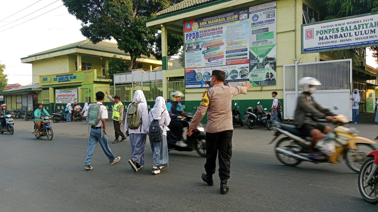 Kab. Cirebon – Senin Pagi (12/06/2023) Personil Polsek Dukupuntang Polresta Cirebon Aipda Totong Sunarta, S.H melaksanakan PH Pagi di depan SMK Manba’ul ‘Ulum termasuk Jl. Nyi Ageng Serang Desa Sindangmekar Kecamatan Dukupuntang Kabupaten Cirebon.