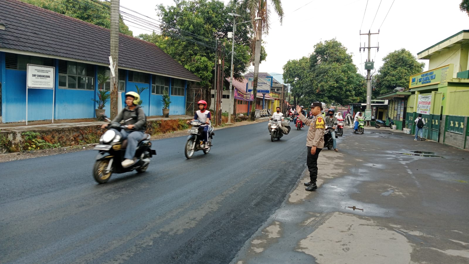 CIREBON – Personil Polsek Dukupuntang Polresta Cirebon Aipda Totong Sunarta, S.H melaksanakan PH Pagi di depan SMK Manba’ul ‘Ulum termasuk Jl. Nyi Ageng Serang Desa Sindangmekar Kecamatan Dukupuntang Kabupaten Cirebon, Senin (19/06/2023).