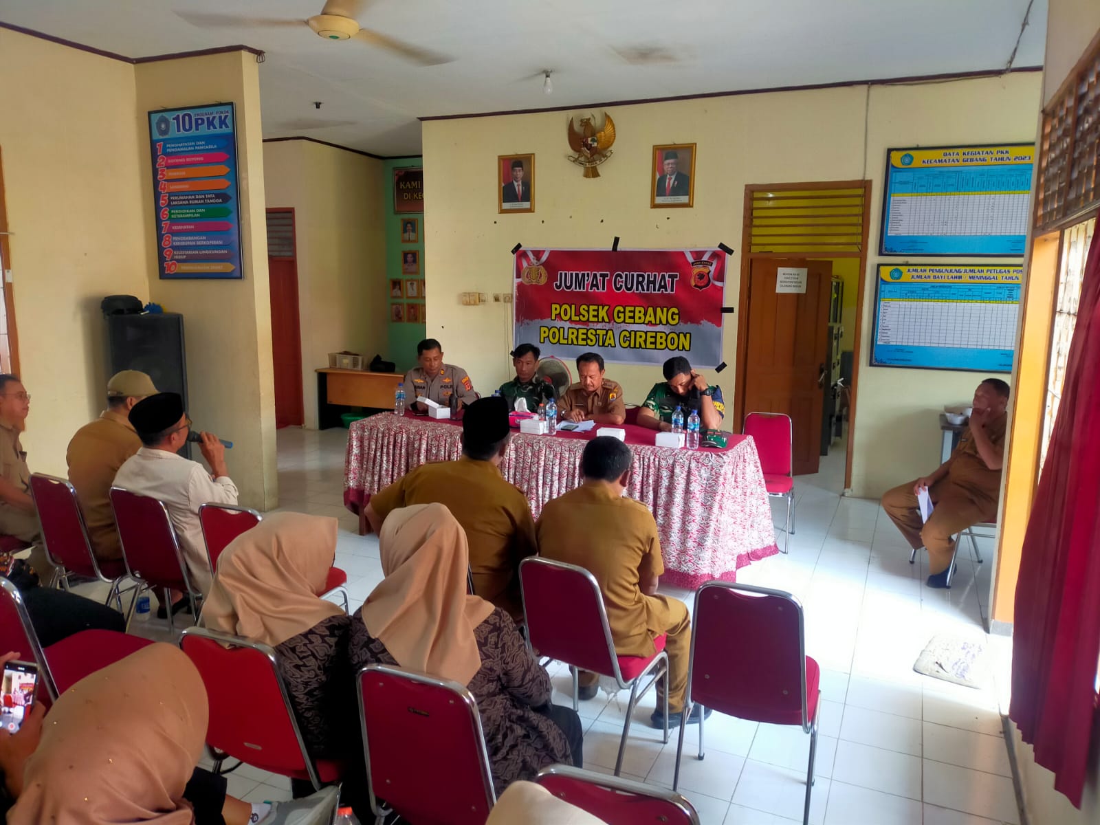 melaksanakan kegiatan Jum’at Curhat bersama Muspika kecamatan Gebang dan tokoh masyarakat Gebang di Aula kantor Kecamatan Gebang Kab. Cirebon. Dalam kesempatan ini Kapolsek Gebang mengajak muspika kecamatan Gebang serta warga dan tokoh masyarakat Gebang untuk menjaga Kamtibmas dan menyampaikan pesan-pesan Himbauan Kamtibmas, serta memperkuat silaturahmi dan komunikasi, untuk menciptakan situasi Kamtibmas yang aman dan kondusif dilingkungan masyarakat.