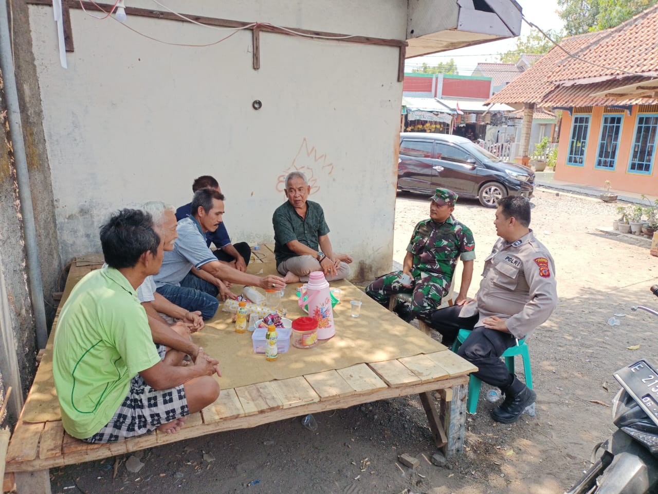 Kanit Binmas Polsek karangsembung Aiptu Budi Setiawan,SH, Bhabinkamtibmas Desa kubangkarang bersama Babinsa Koramil koramil karangsembung melakukan ngopi bareng ini semata-mata, ingin mendengar langsung keluhan dan aspirasi Masyarakat terkait permasalahan hukum dan kamtibmas di Desa kubangkarang Kecamatan karangsembung Kabupaten Cirebon yang dilaksanakan di rumah bpk kuwu kubangkarang sdr.nana nazarudin latief.