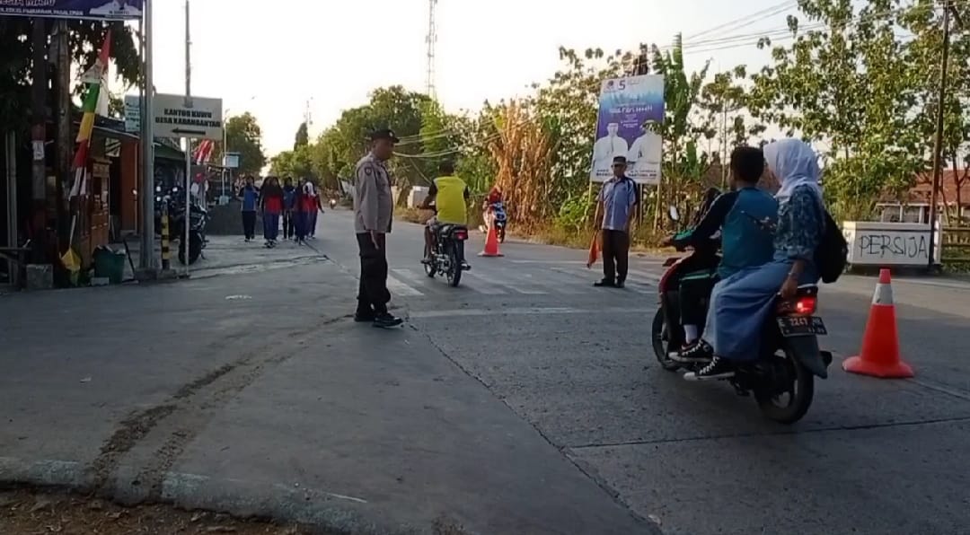 Personil Polsek karangsembung Polresta Cirebon melaksanakan Gatur Lalu lintas pagi di Jalan Karangwareng Kec. Karangwareng Kab. Cirebon