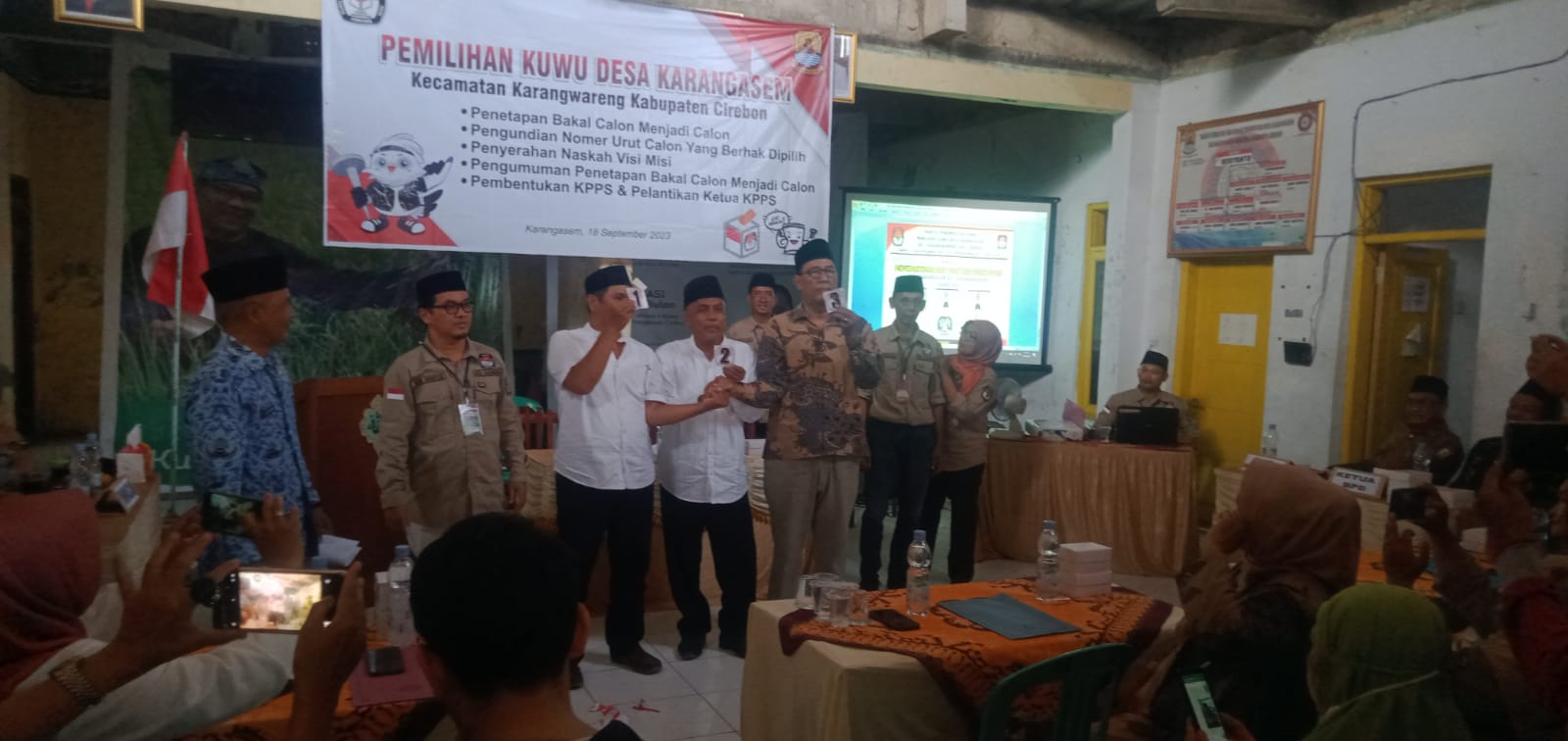 karangsembung – Senin (18/09/2023) Tahapan Pemilihan Kuwu Serentak Tahun 2023 Kabupaten Cirebon telah memasuki Tahapan Penetapan Bakal Calon Kuwu menjadi Calon Kuwu, Pengundian Nomor Urut, dan Penyerahan Naskah Visi Misi.