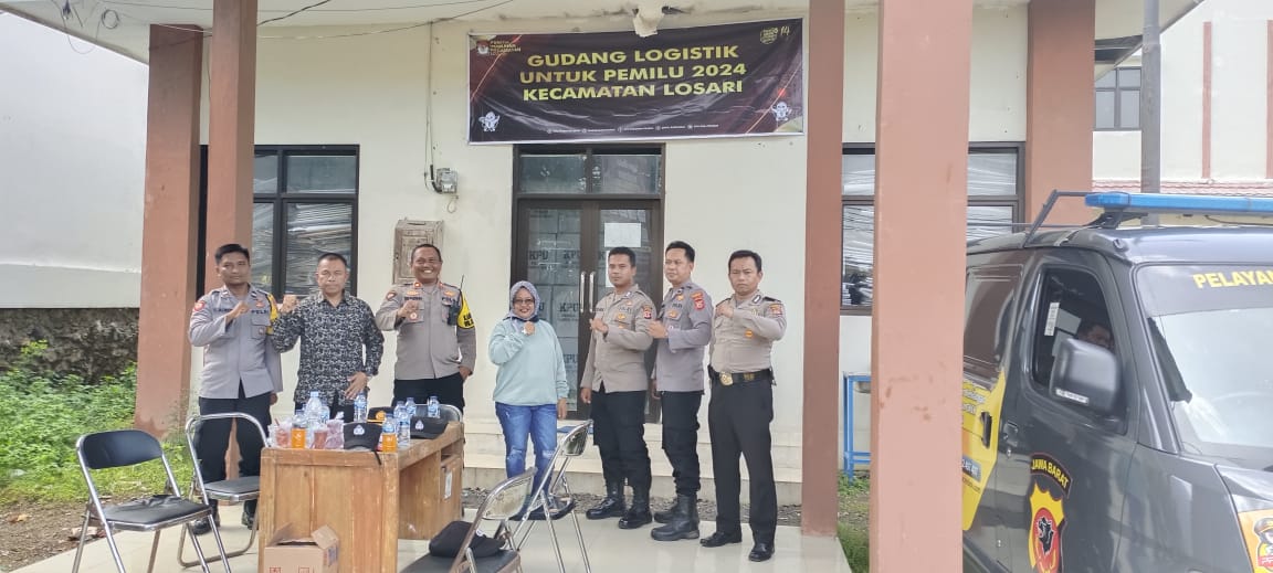 Losari – Kepolisian Sektor Losari Polresta Cirebon terus tingkatkan pengamanan logistik Pemilu di gudang PPK Losari Kecamatan Losari paska pemungutan suara pemilu 2024, Jumat (16/02/2024).