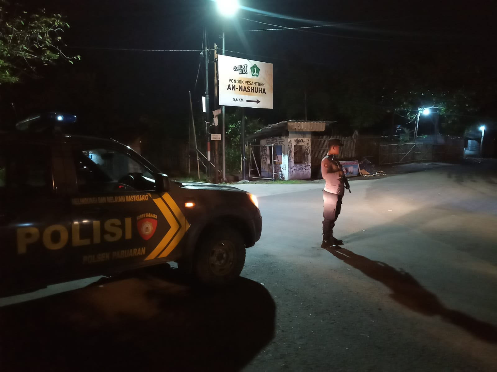 *AKP NANI KUSMAYATI SH. MH. *dengan Giat Kepolisian patroli di malam hari sebagai upaya cegah dan tangkal gangguan kamtibmas dan antisipasi C3, tawuran dan genk motor dan kejahatan lain di malam hari, Polri sebagai pengemban tugas untuk melindungi, mengayomi dan melayani masyarakat berupaya untuk menciptakan situasi yang aman dan kondusif di wilayah hukum Polsek Pabuaran.