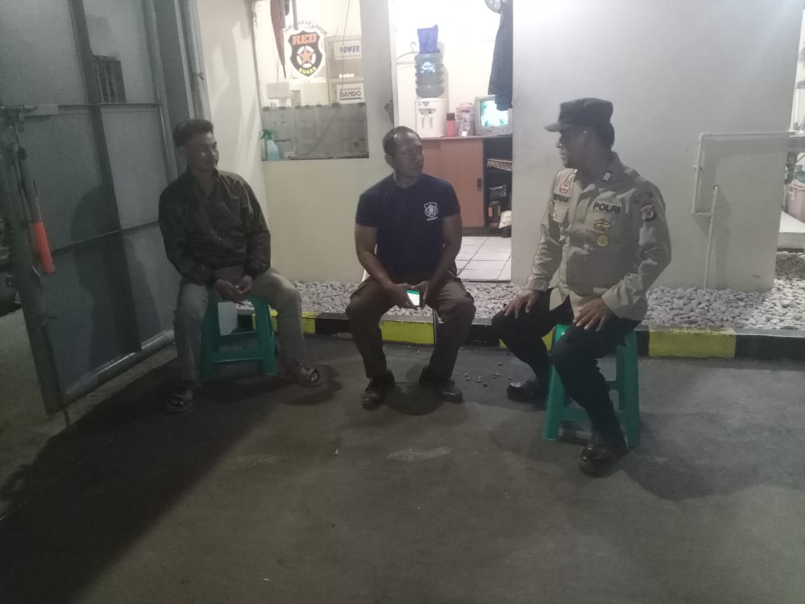 KAB CIREBON – Polsek Pangenan, Bripka Ridwan beserta anggota lainnya Bripka Irwan Patroli dialogis dengan Security Pt. SBS Desa Rawaurip Kecamatan Pangenan sampaikan pesan Kamtibmas. Jumat (10/05/2024)