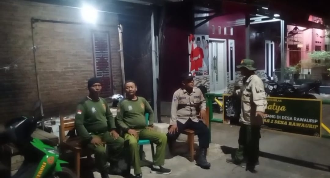 Babinkamtibmas Desa Rawaurip BRIPKA RIDWAN melaksanakan patroli sambang dialogis dengan LINMAS di Pos blok Kliwon Desa Rawaurip sampaikan pesan kamtibmas. (10/12/2023).