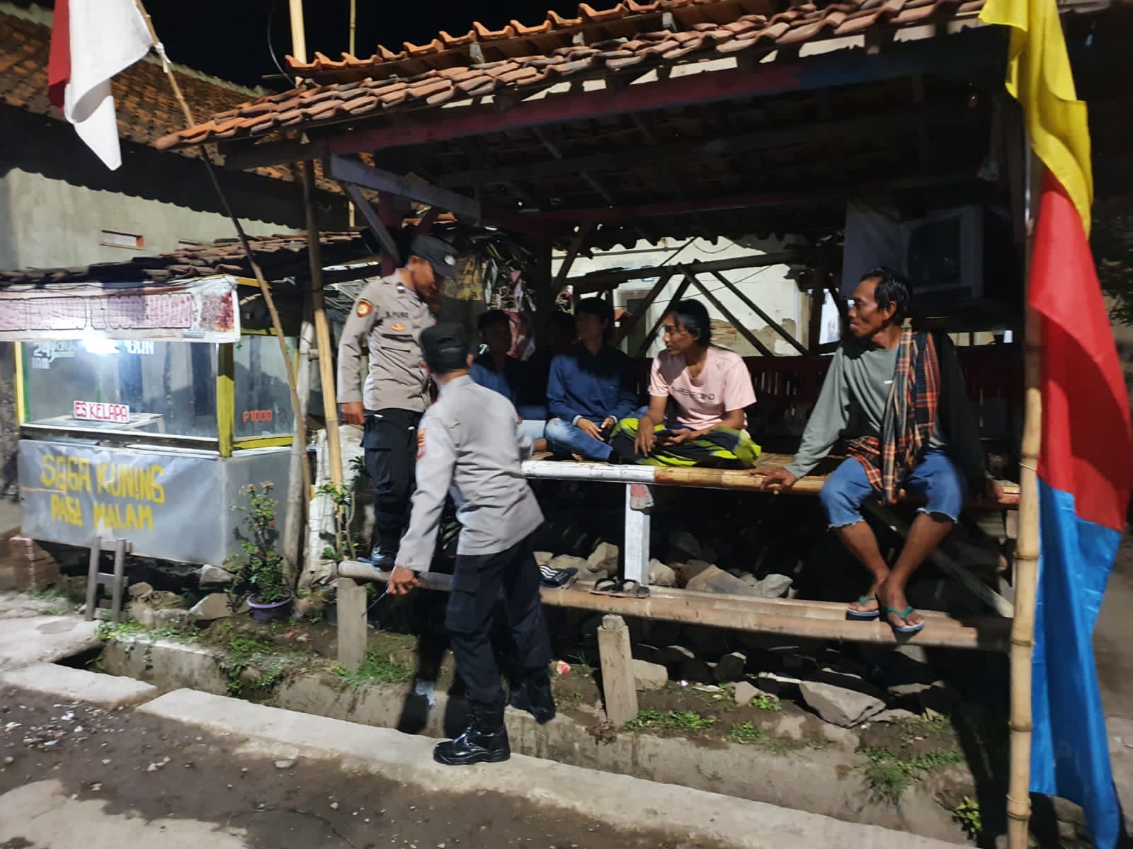 CIREBON –  Kapolsek Pangenan IPTU SUKENDRI beserta Babinkamtibmas Desa Japura Lor AIPDA SAPURO melaksanakan patroli sambang dialogis dengan Warga yang lagi kumpul di Pos Kamling termasuk Desa Japura Lor kecamatan Pangenan, sampaikan pesan kamtibmas. Selasa, (15/08/2023).