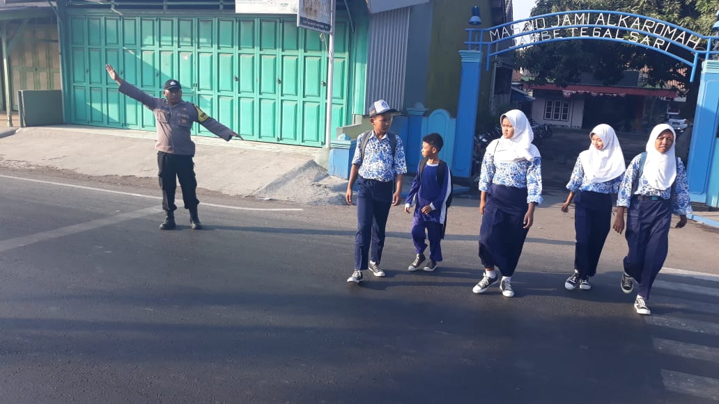 Jajaran Personil Polsek Plered Polresta Cirebon Polda Jabar, melaksanakan Gatur Lalu lintas pagi di Jaln Raya Otista tepatnya di depan SDN3 Tegalsari dan SMPN 2 Plered Ds. Tegalsari Kec Plered Kab Cirebon.