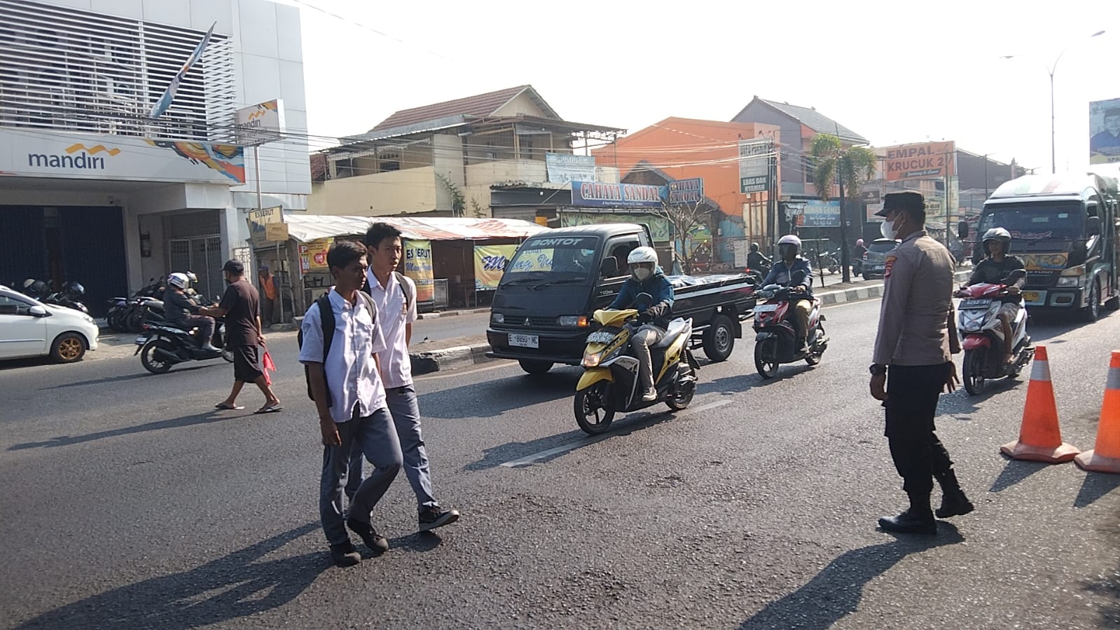 Jalan  Raya Panembahan  kec Plered mengingat banyak kendaraan yang lalu lalang melintas membuat arus lalu lintas cukup ramai. Namun dengan kehadiran personil Polri tersebut sehingga para pemakai jalan dapat dengan nyaman dan lancar.