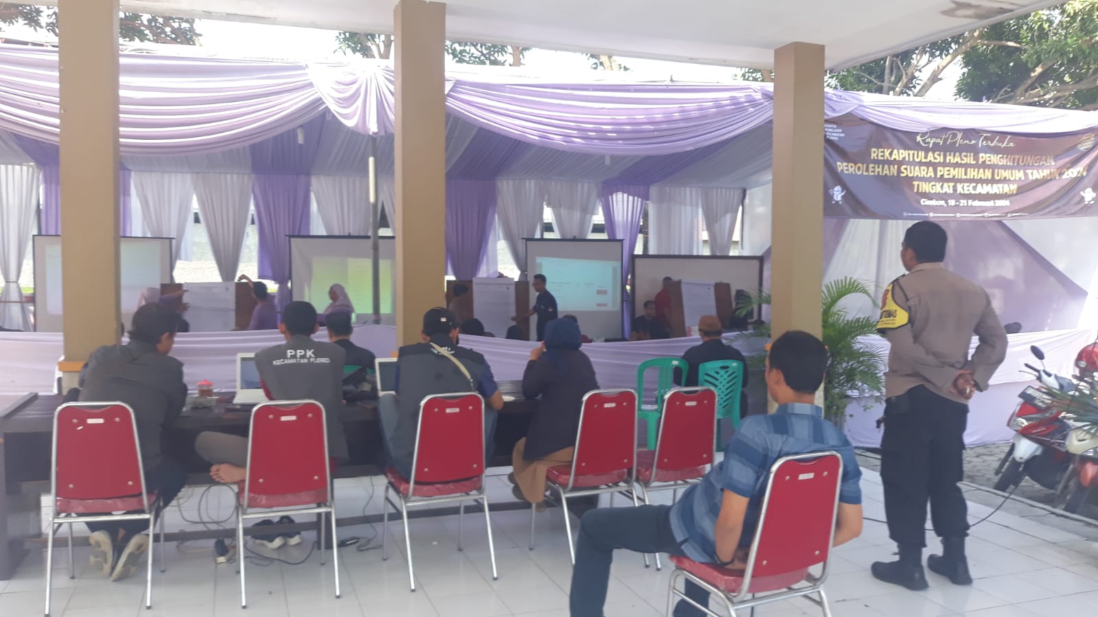 Kapolresta Cirebon Kombes Pol. Sumarni, SIK, SH, MH. melalui Kapolsek Plered, SH, mengatakan, pengamanan ini dilakukan dalam mengantisipasi gangguan Kamtibmas terhadap rapat pleno terbuka rekapitulasi suara Pemilu tahun 2024 di Kantor Kecamatan Plered dengan jumlah 10 Desa dengan jumlah TPS 167, jumlah kotak suara yang di Terima di PPK dari masing-masing KPPS sebanyak 835 kotak suara.
