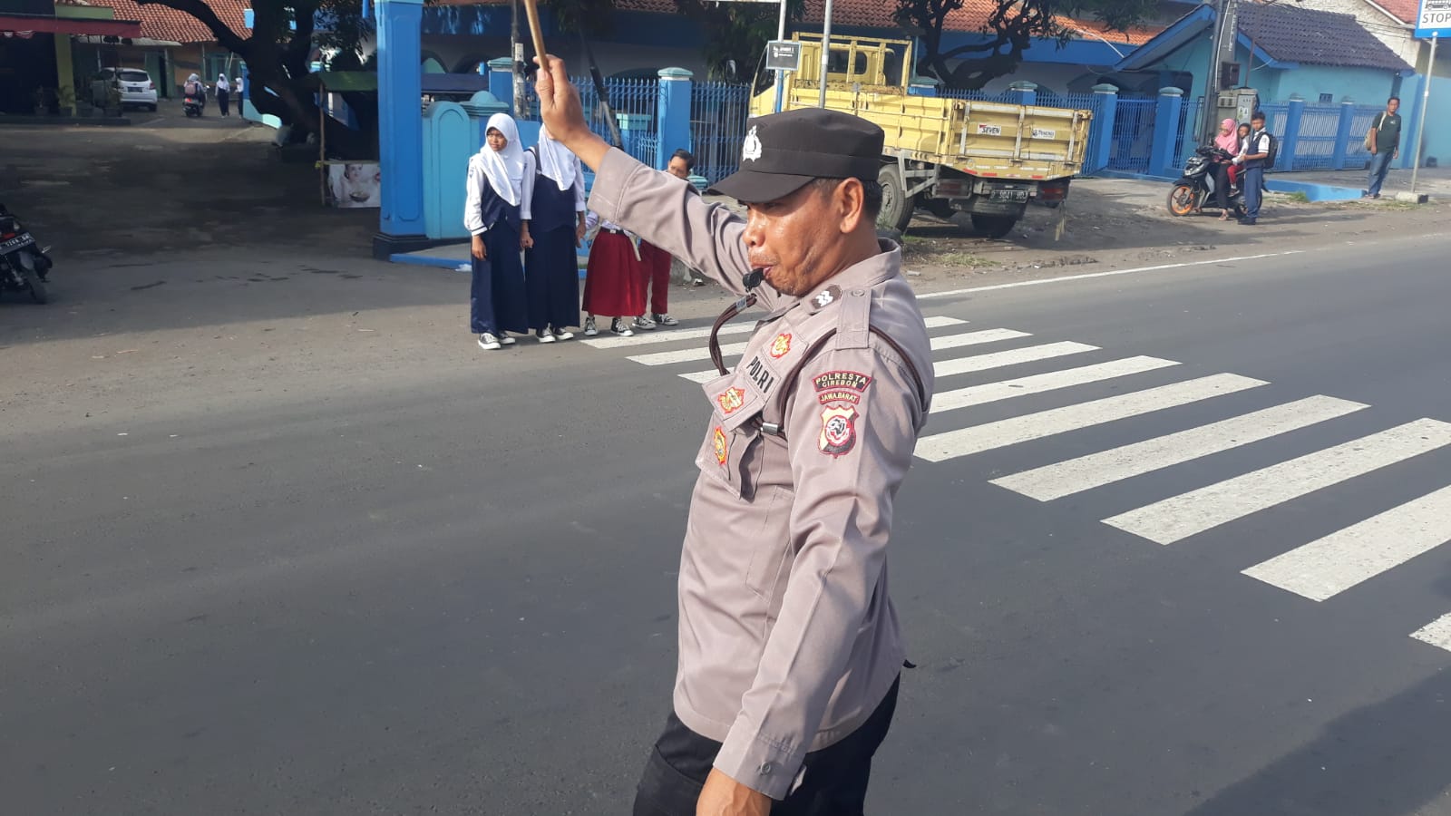Personil Polsek Plered Polresta Cirebon melaksanakan Gatur Lalu lintas pagi di Jalan raya Baepas Cirebon – Palimanan tepatnyatnya di depan SDN 3 Te galsari dan SMPN 2 Plered termasuk Desa Tegalsari Kec. Plered Kab. Cirebon dengan mensosialisasikan dan menghimbau kepada pengguna jalan agar memelihara kamtibmas dalam rangka menghadapi Pemilu legislatif dan Pilpres 2024.