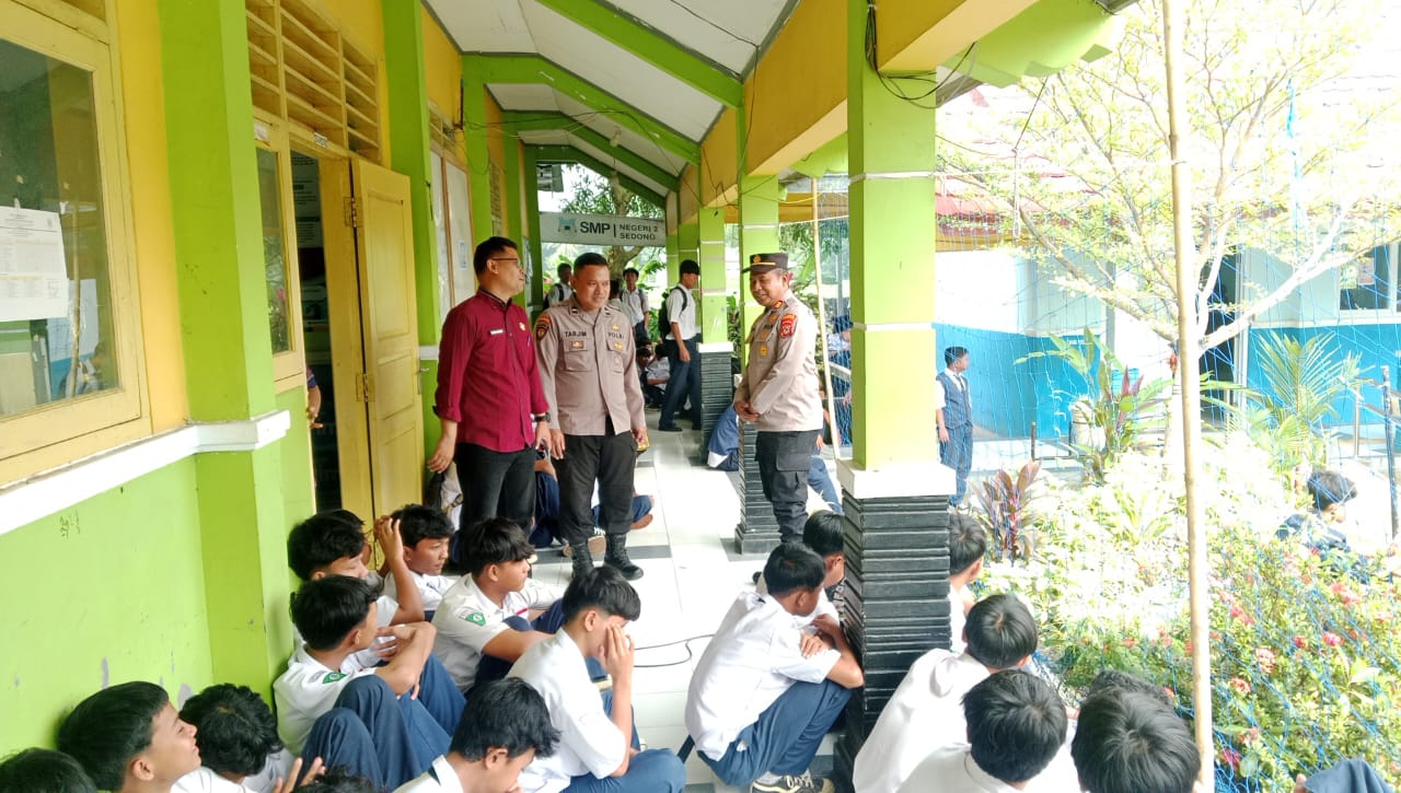 KAB. CIREBON – Dalam kegiatan Goes To School di SMPN 2 Sedong, Kapolsek Sedong AKP Usman, SH. bersama Aipda TARJIM memberikan pembinaan dan penyuluhan tentang Sosialisasi bahaya Cyber Bullying, berlalu lintas yang baik dijalan raya dan Ketentuan penggunaan kendaraan bermotor untuk tidak menggunakan Knalpot Debrong, Hindari Kekerasan di lingkungan Sekolah , serta Jauhi obat-obatan terlarang dilingkungan sekolah.