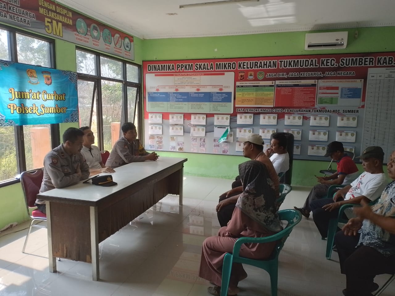 KAB. CIREBON – Polsek Sumber Polresta Cirebon menggelar program Jum’at Curhat guna menyerap aspirasi masyarakat dari semua kalangan secara langsung yang ada di Wilayah Kec Sumbet Program Jum’at curhat dilaksanakan oleh Waka Polsek Sumber Ipda Amir.AM bersama bhabinkamtibmas Kel Tukmudal Bripka Subpiyani dan lurah Tukmudal serta warga kel Tukmudal yang bertempat dikantor Kel Tukmudal Kec Sumber Kab Cirebon, Jumat (03/11/2023).