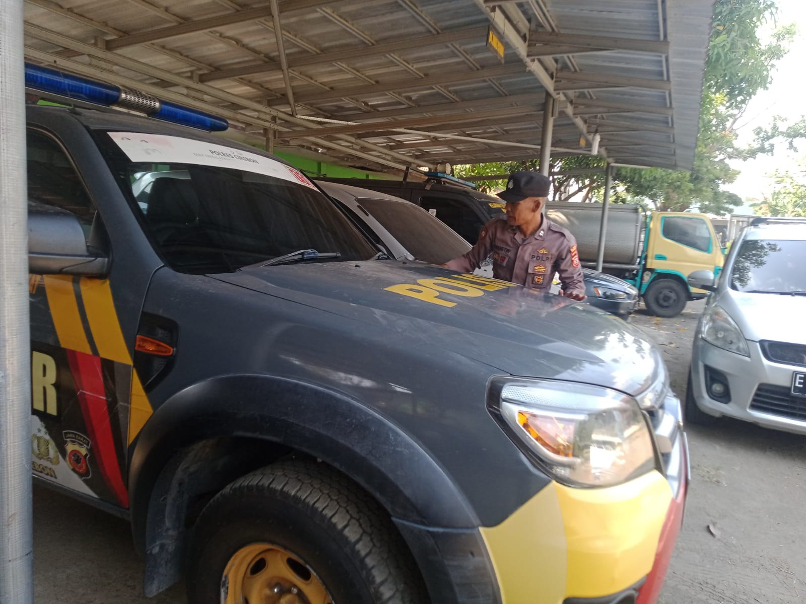 Kanit Samapta AIPTU ANANG TRI melaksanakan pengecekan dan perawatan rutin kendaraan dinas mulai dari sparepart, oli dan keberhasihan kendaraan dinas.