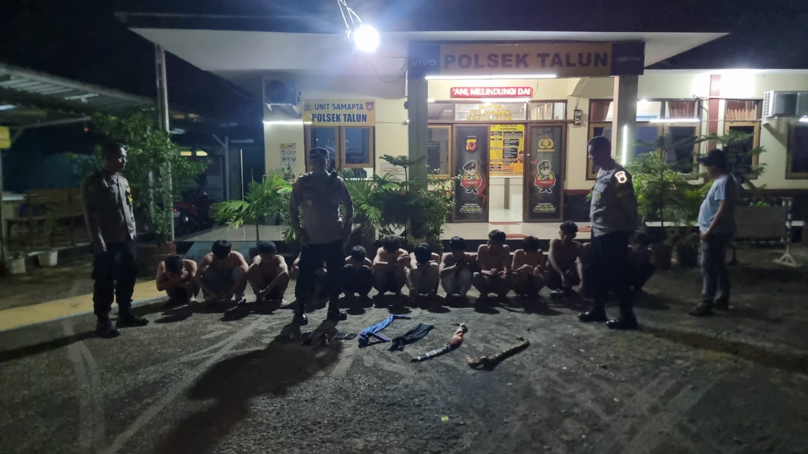 Cirebon – Belasan remaja berhasil diamankan oleh anggota Polsek Talun Polresta Cirebon Rabu dini hari Mereka sengaja diamankan, Lantaran mereka diduga hendak melakukan aksi perang sarung. ( 20/03/2024 )