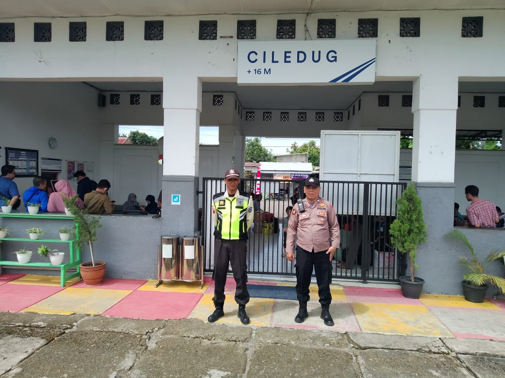 PABUARAN KAB. CIREBON – Lonjakan penumpang pada Mudik Lebaran hari Raya Idul Fitri 1445 H / 2024 M, di Stasiun Kereta Api Ciledug Daops 3 Cirebon. Anggota Pos Pam Ciledug Pabuaran Polresta Cirebon dilibatkan dalam upaya menjaga keamanan dan kenyamanan para penumpang, Kapolresta Cirebon Kombes Pol. Sumarni, SIK. SH. MH. pemerintahkan Kapolsek Pabuaran AKP Much. Soleh, SH. untuk menugaskan kepada anggotanya yang terlibat dalam Ops Ketupat Lodaya (OKL) 2024 melaksanakan pengamanan angkutan khusus untuk Mudik Lebaran hari Raya Idul Fitri 1445 H / 2024 M. Senin- (15/04/24)