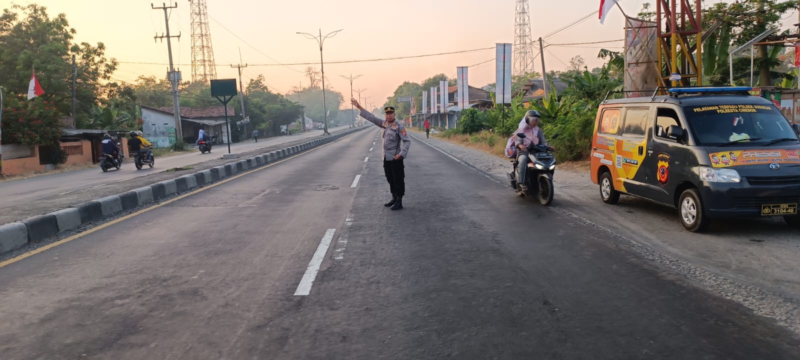 Dan giat pelayanan pagi hari tersebut diimplementasikan dalam bentuk kegiatan kepolisian berupa pergelaran pengaturan lalu lintas tersebut, dilakukan oleh Anggota SPKT pada hari Rabu tanggal 09 Agustus 2023 , pagi hari melaksanakan pengaturan lalu lintas di perempatan Bunder dalam kegiatan tersebut personel polsek Susukan membantu karyawan Pabrik,yang mau berangkat kerja dalam menyebrang jalan hal tersebut bertujuan untuk mencegah kecelakaan lalu lintas serta mencegah kemacetan arus lalulintas.