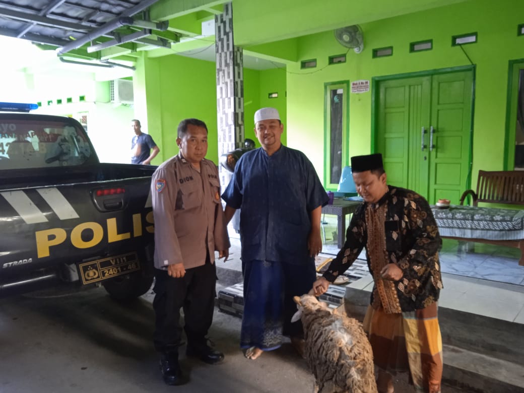 Astanajapura – Jelang Perayaan hari raya Idul Adha, Ps kanit binmas polsek Astanajapura aiptu Sudiono menyerahkan satu ekor kambing kepada pengurus KBIH NIDA NUR ARAFA Ustad H Yanto Fathurohman di blok perumahan Mertapada Asri termasuk desa Mertapada Wetan kecamatan Astanajapura,pada Selasa sore. (27/06/2023).