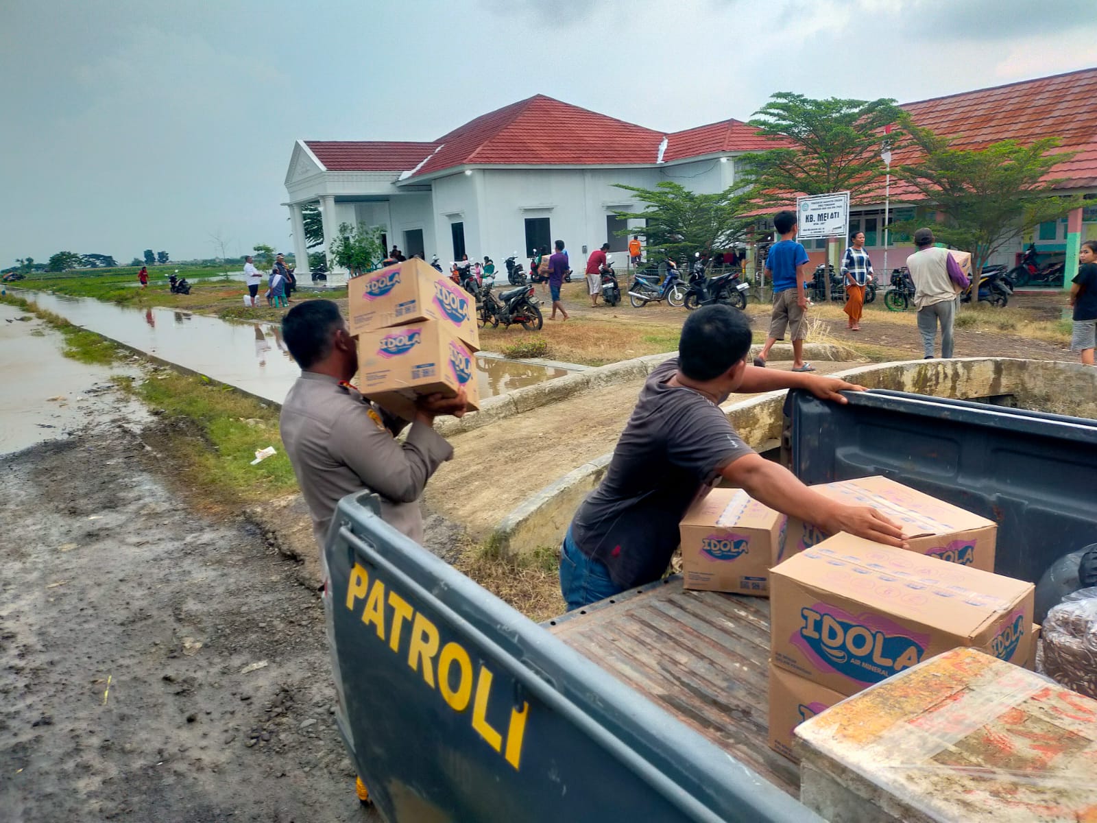 Kapolsek Gebang Akp. Wawan Hermawan,S.H Beserta Anggota melaksanakan Monitoring Pam Siaga dgn Aparat Desa dan Warga sekitar, sekaligus memberikan bantuan untuk warga yang terdampak banjir tersebut