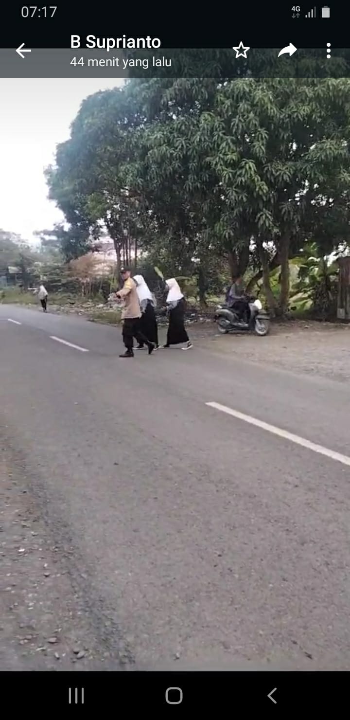 Personil Polsek Panguragan Polresta Cirebon melaksanakan Gatur Lalu lintas pagi hari di Jalan Nyimas Gandasari tepat nya di Depan Smp 1 Panguragan Kec. Panguragan Kab. Cirebon