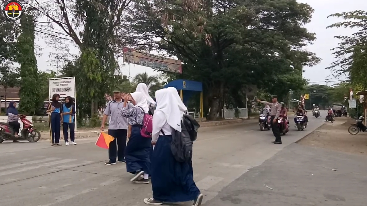 Personil Polsek karangsembung Polresta Cirebon melaksanakan Gatur Lalu lintas pagi di Jalan Karangwareng Kec. Karangwareng Kab. Cirebon