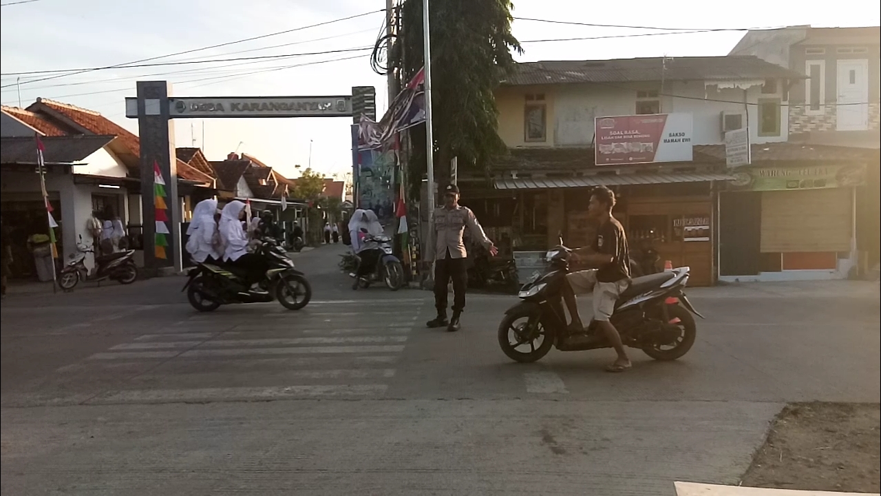 Personil Polsek karangsembung Polresta Cirebon melaksanakan Gatur Lalu lintas pagi di Jalan raya Karangwareng termasuk Desa Karanganyar Kec. Karangwareng Kab. Cirebon dengan mensosialisasikan dan menghimbau kepada pengguna jalan agar memelihara kamtibmas dalam rangka menghadapi Pemilu legislatif dan Pilpres 2024.