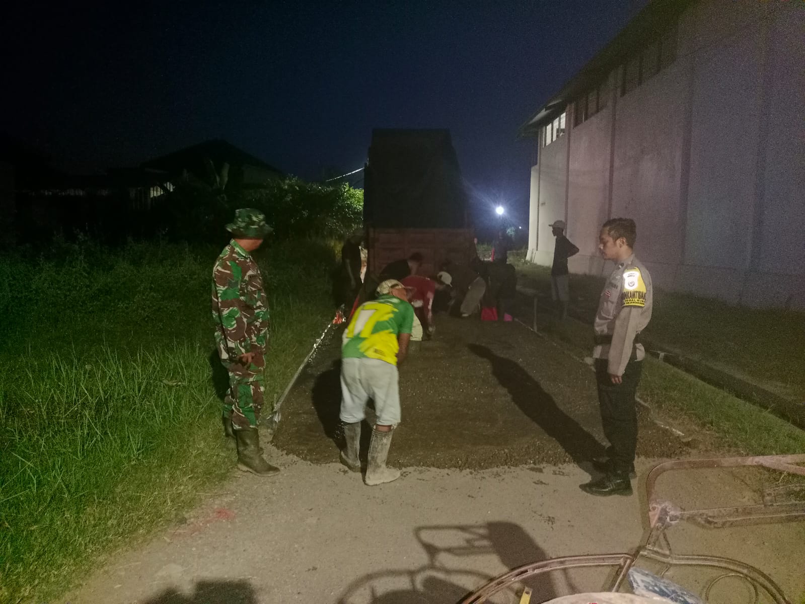 KAB. CIREBON –  Sebagai Bentuk Sinegritas TNI – POLRI, Bhabinkamtibmas Desa Tegalgubug Polsek Arjawinangun Aipda Makmud bersama Babinsa dari Koramil Arjawinangun bersama sama dalam melaksanakan tugasnya ikut berperan serta dalam kegiatan di lingkungan warga masyarakatnya dengan ikut memonitor pekerjaan Rabat Beton yang berlokasi di Blok Rembes Desa Tegalgubug.