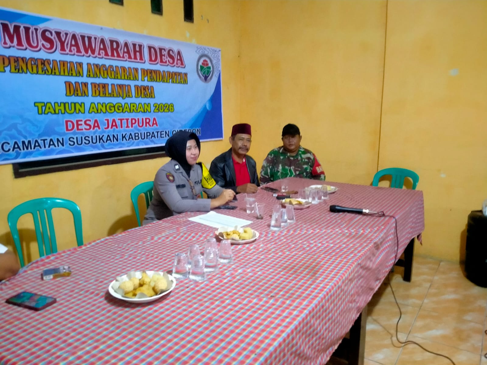 Susukan, Cirebon – Sinergitas TNI dan Polri kembali ditunjukkan melalui kehadiran Bhabinkamtibmas dan Babinsa dalam kegiatan Musyawarah Desa (Musdes) pengesahan Anggaran Pendapatan dan Belanja Desa (APBDes) Tahun Anggaran 2026 di Desa Jatipura, Kecamatan Susukan, Kabupaten Cirebon, Kamis (29/01/2026) malam.