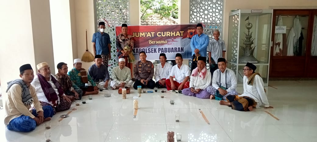 PABUARAN KAB. CIREBON – Jum’at 19/04/2024, Kapolsek Pabuaran Polresta Cirebon AKP Much. Soleh, SH., didampingi Ps. Kanit Binmas Bripka Usyanto, SH., kali ini mengajak Ketua MUI KH. Drs. Ismail Zein, Ketua DKM KH. Iis Zaenul Mukhlisin, SPd, MPdi, Tokoh Agama dan Tokoh masyarakat duduk bersama Ngopi Aspirasi melalui program Jumat Curhat di Masjid Baitusuada Desa Leweunggajah Kec. Ciledug Kab. Cirebon.