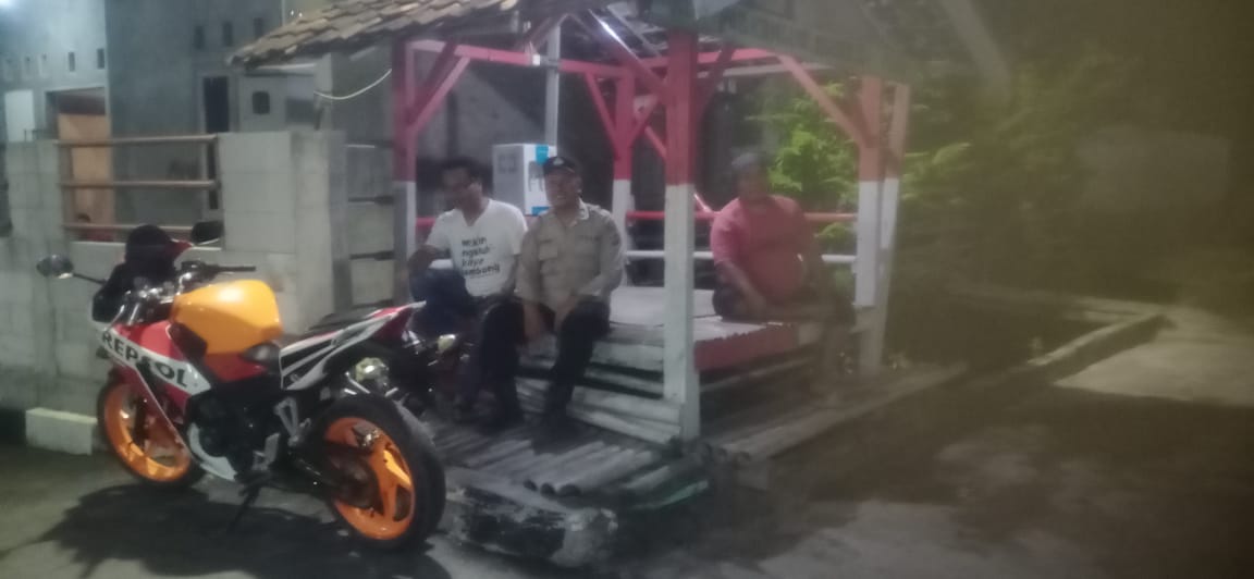 KAB. CIREBON –  Personil Bhabinkamtibmas Polsek Karangsembung Aiptu Slamet wardoyo melakukan pengecekan Satkamling di Desa Kubangdeleg, Kecamatan Karangwareng, Kabupaten Cirebon, Minggu malam (05/05/24) .