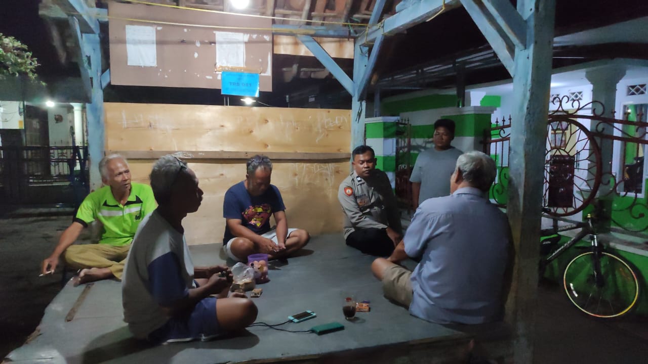 KAB CIREBON,– Personil Bhabinkamtibmas Polsek Karangsembung Aiptu Taufik.,SH melakukan pengecekan Satkamling di Desa Karangtengah, Kecamatan Karangsembung, Kabupaten Cirebon, Senin malam (06/05/24) .