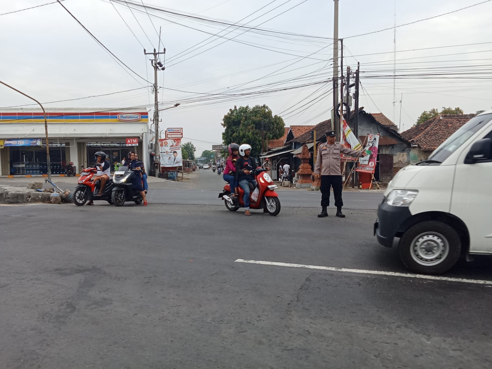 Jajaran Personil Polsek Susukan Polresta Cirebon Polda Jabar, melaksanakan Gatur Lalu lintas pagi di perempatan bunder Kec Susukan Kab Cirebon.
