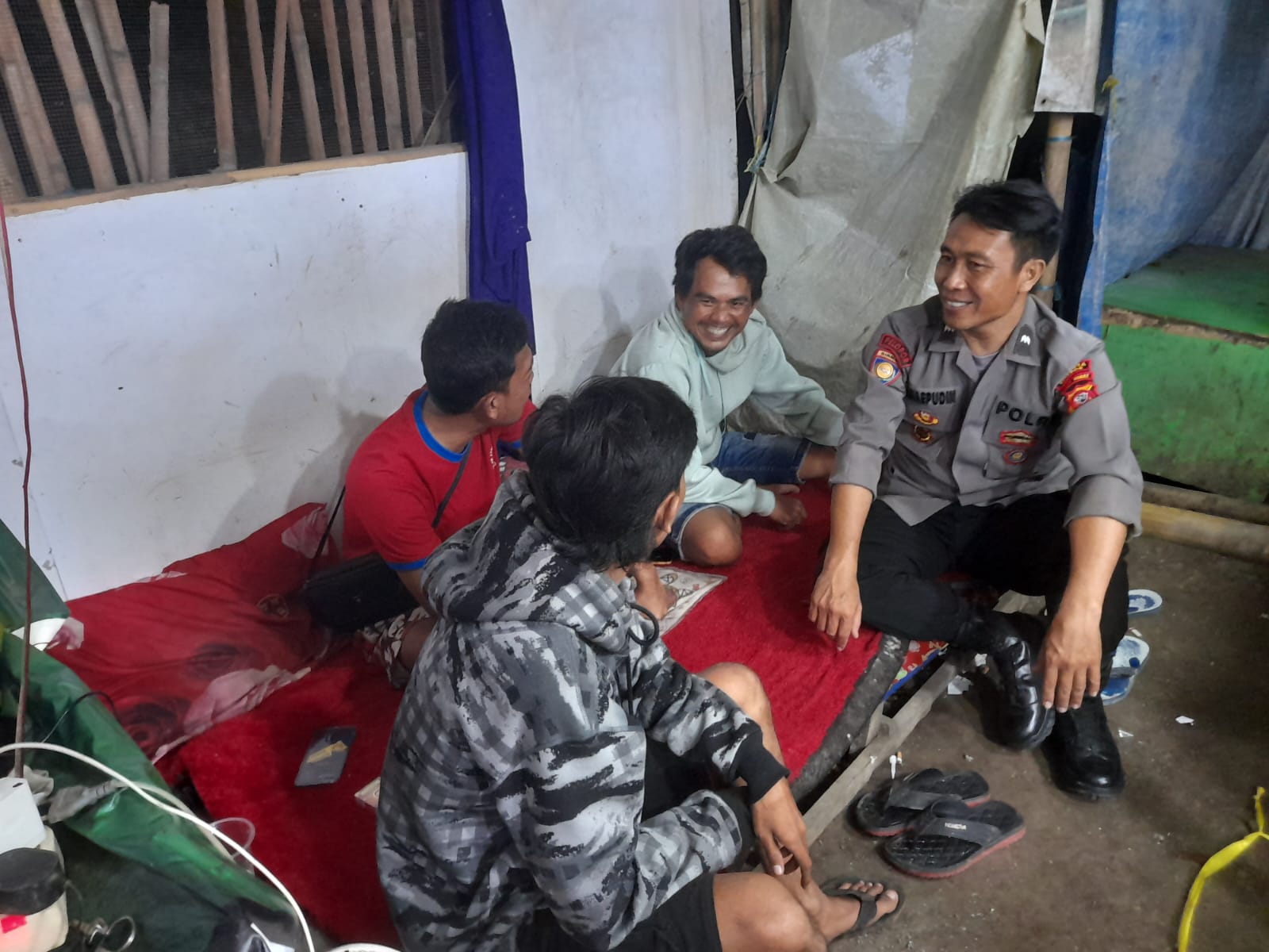 Unit Patroli Polsek Babakan sambangi Pos Kamling dan Pemuda Nongkrong di desa Gembongan mekar kecamatan Babakan, Kab Cirebon