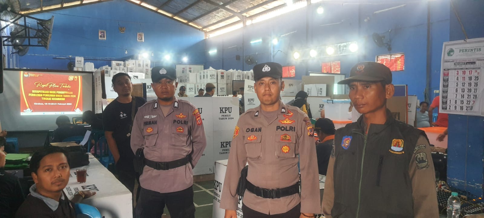 Susukan– Polsek Susukan Polresta Cirebon melaksanakan pengamanan Rapat sidang Pleno Terbuka rekapitulasi suara Pemilu tahun 2024 tingkat PPK Kec. Susukan bertempat di GOR Perintis Desa Bojong kulon Kecamatan Susukan, Kabupaten Cirebon, yang di hadiri oleh Muspika Kecamatan Susukan PPK Kec. Susukan Panwascam Kec. Susukan PPS desa-desa kecamatan Susukan, saksi Paslon dan Saksi Parpol se kecamatan Susukan Rabu,- (21/02/2024).