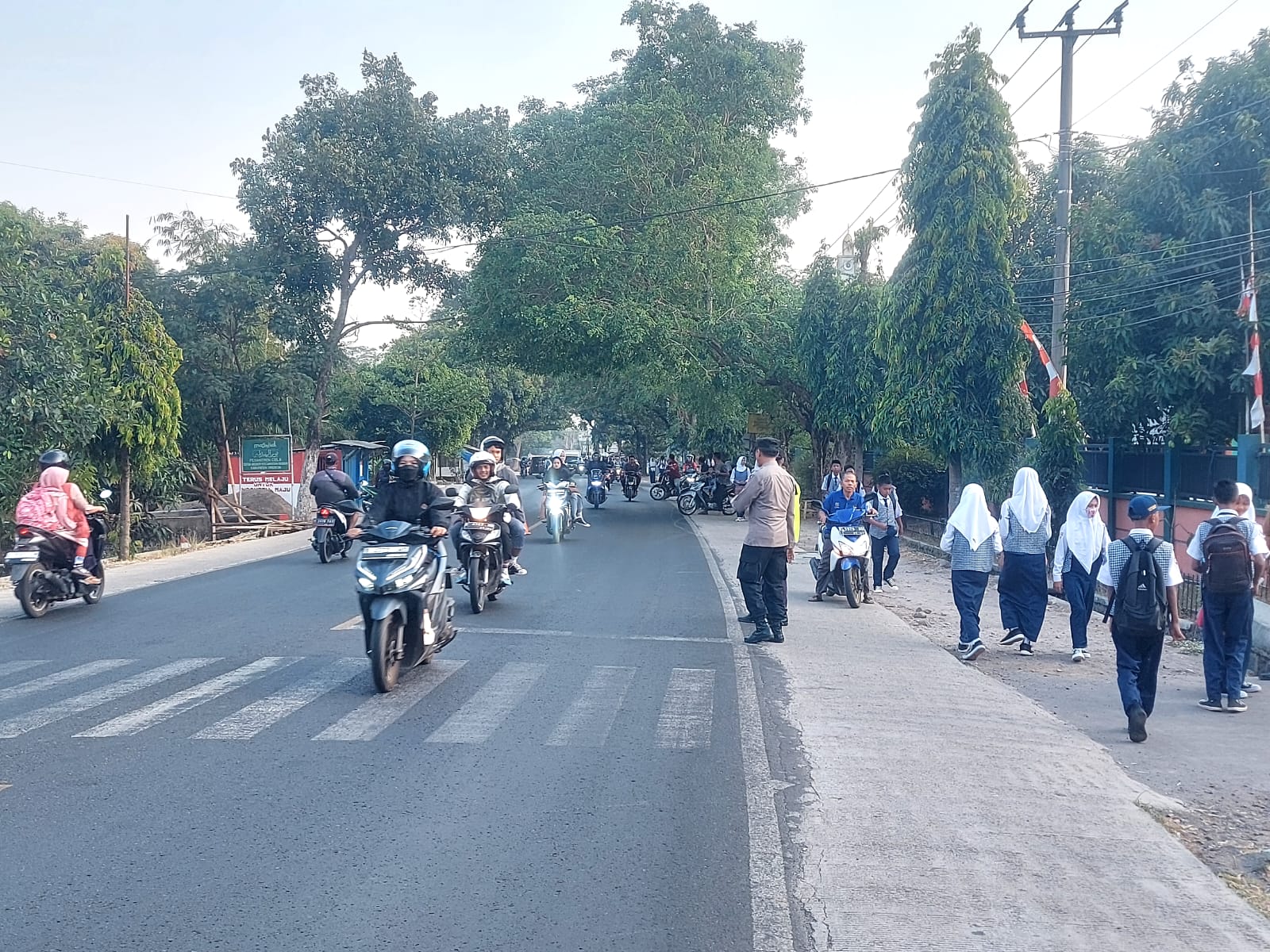 Beber – (04/03/2024) Polsek Beber Polresta Cirebon rutin melaksanakan pengaturan lalu lintas pagi. Kegiatan ini merupakan salah satu wujud kepedulian Polsek Beber dalam menanggapi harapan masyarakat khususnya orang tua siswa yang khawatir akan keselamatan anaknya ketika menyebrangi jalan raya.